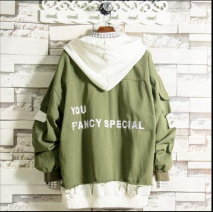 Jacket men spring and autumn 2020 tooling jacket ins printed clothes men's Korean trend casual hooded jacket 2168 green XL