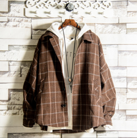 Contrast plaid overalls men's Korean version of the trend ins tide brand Hong Kong style university students hooded jacket outer clothes apricot XXL