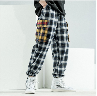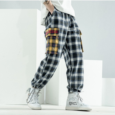Product name: ins super black and white plaid pants male Harajuku necy was thin Korean loose trend youth straight retro pants red M
