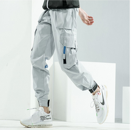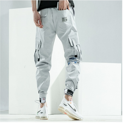 Product Name: Spring Street Gathered Pants Men's Loose Velcro Overalls Men's Tide Brand Function Harem Casual Pants Grey 2XL