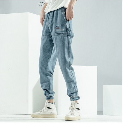 Product Name: Tide Brand Jeans Men's Loose Trend Hip Hop Pants Spring Beaded Overalls Men's Korean Small Feet Harem Pants Blue XL