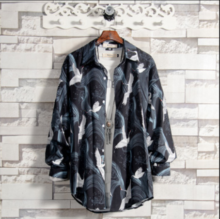 Product Name: Autumn Shirt Men's Long Sleeve Korean Youth Trend Casual Net Red Handsome Slim Print White Shirt Inch Black M