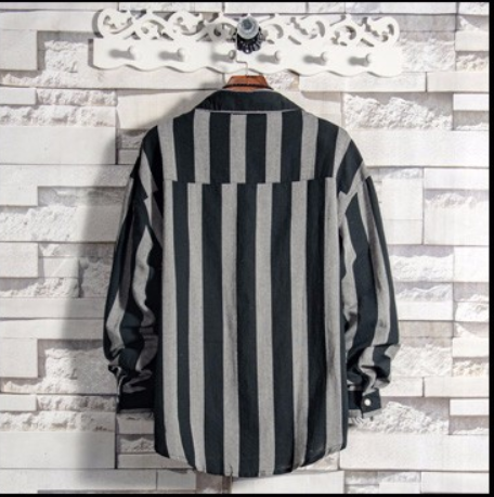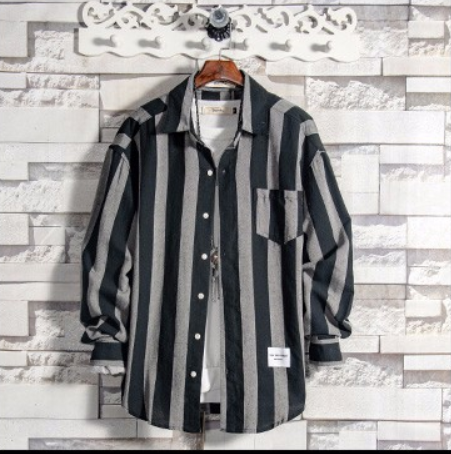 Product Name: Men's Long Sleeve Shirt Stripe Jacket Tops Korean Korean Tide Men's Shirt Handsome Casual Spring Inch Shirt Black L
